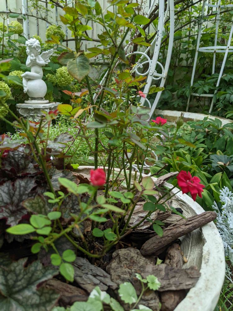 ヒューケラさんとミニバラ🌹さんのコントラストがいい感じですね❣️