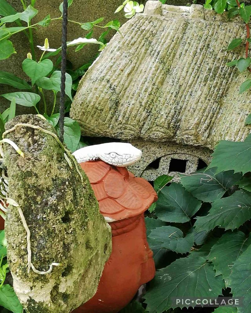 ハイィ うちの庭には レプリカの 亀とか蛇が いろいろあるんですゥ😚