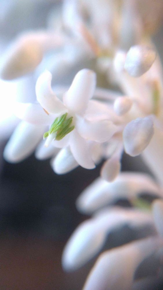 ノシランはこんなふうになっているのね 花弁がふっくら 黄緑の芯も素敵!家にもノシランお迎えしたいわ!🤍💚🤍