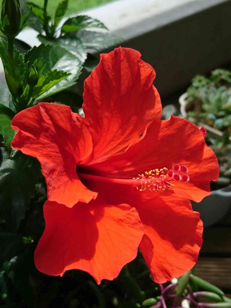 赤いハイビスカス🌺はやっぱり素敵ね。◕‿◕。(。•̀ᴗ-)✧