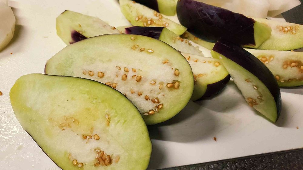 実家から貰ってきた茄子は細めで長めなので丸のまま半分にして煮付けたりして食べました。毎日茄子の料理でした🤣