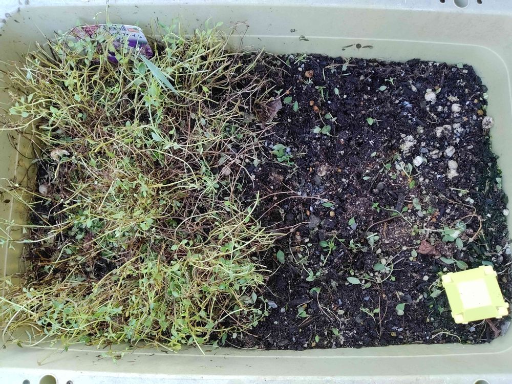 こんばんは。クリーピングタイムさんモリモリしすぎてバッタの住処になりつつありましたのでバッサリいきました。隣にパセリが植え付けしてありましたが飲み込まれ消えちゃいました。すごい生育旺盛です。