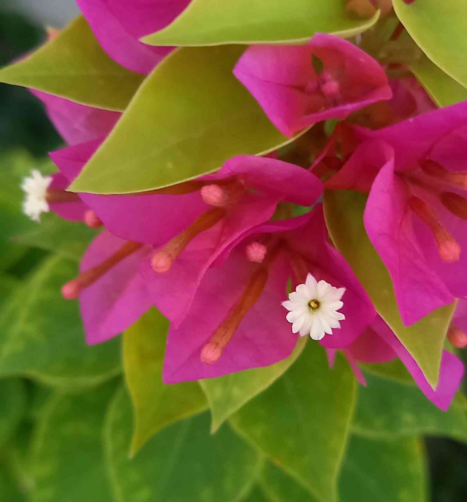 ショッキングピンクの中に咲く白い花は🌟みたいに輝いて見えるね😍