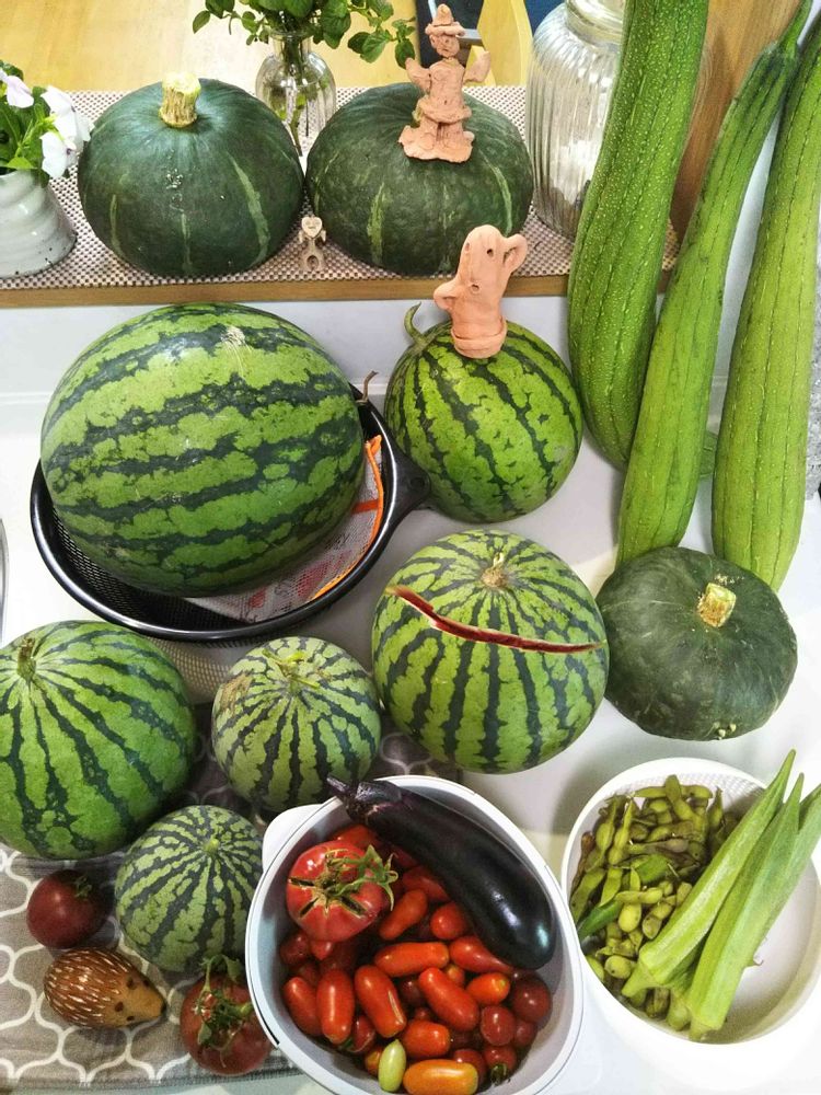 大収穫ですが…家では食べきれないので🍉はもらい受け先を探さねば😅🌿