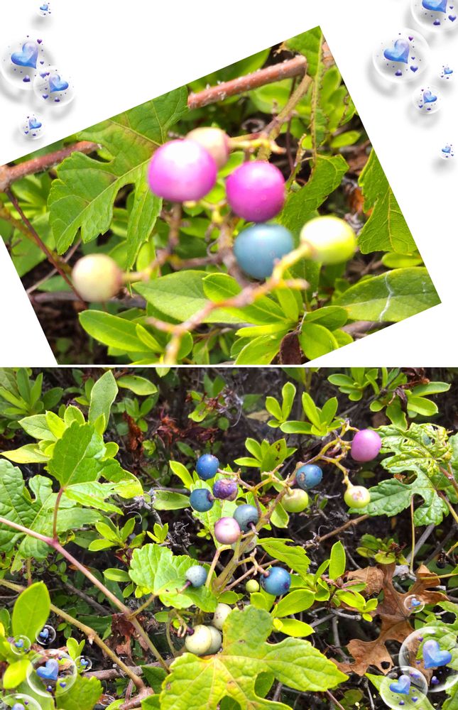 昨年は もっとカラフル🟣🔵🟡🟤で綺麗で 大きめだったから 集めて そのグラデーションを楽しむために 悪戯してみたけど, 今年のは~いまいち 実が ちっちゃい🤭💦