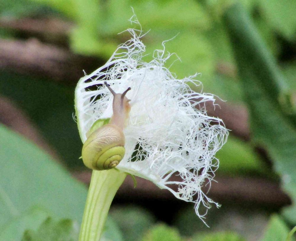 花と虫と風と空とさんのカラスウリ,緑のカタツムリ,カラスウリの花の投稿画像