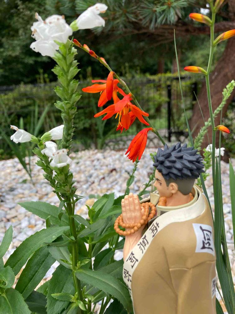 白花は先月見切コーナーから連れ帰りぽつりぽつりやっと咲き始め、虎の尾とタグがありましたが、種類がよく分かりません🙄