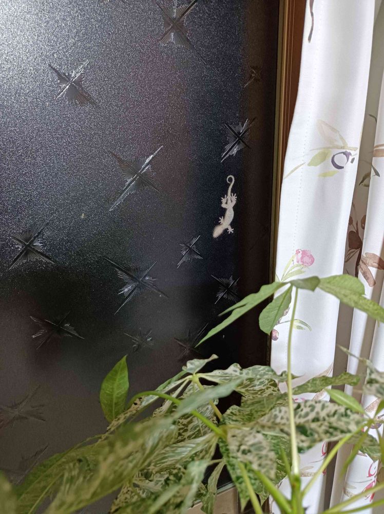 明かりに集まる虫を食べに、窓に毎晩貼り付きます。
