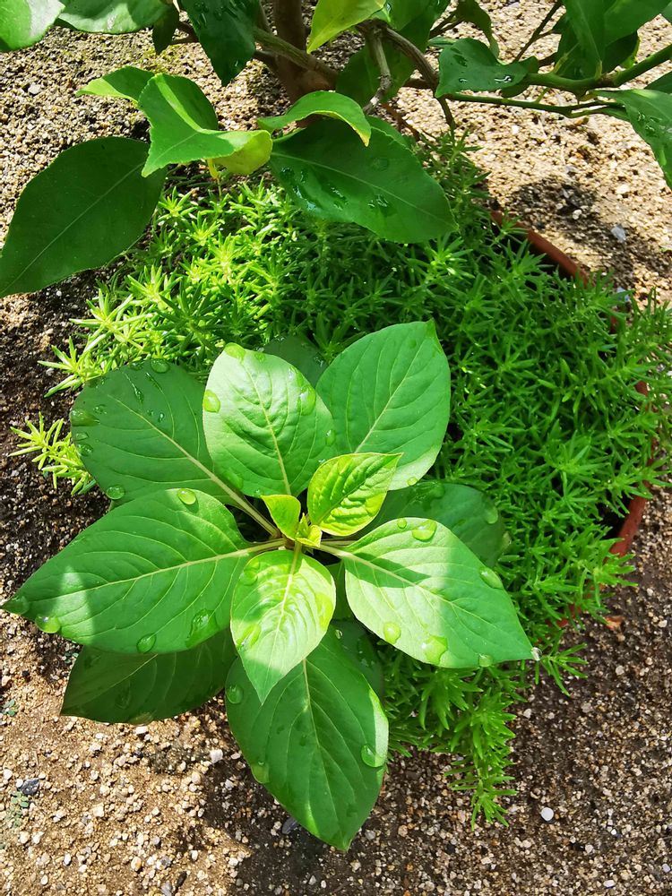こぼれ種から咲いたというセロシアも葉が生き生きしてるから、近い将来綺麗に咲いてくれるね。また咲いたら見せね〜☺️✌️