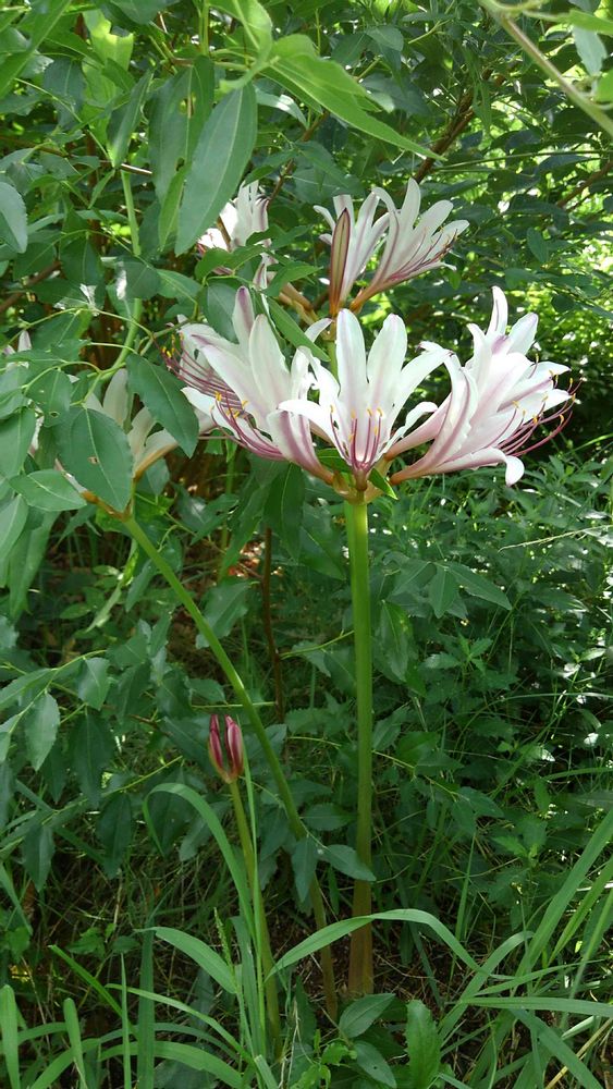 私も最初それかと思ったのですが、ナツズイセンとされている方がいて、さらに調べてみましたところ、リコリス(学名)の「スクアミゲラ」という種類がよく見られるナツズイセンと呼ばれる花のようですが、似たようなリコリスもナツズイセンと呼んでもかまわないようです。