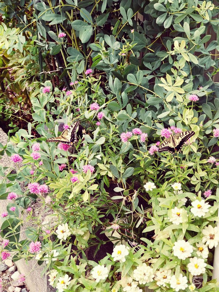 お花さんにキアゲハ2頭🦋🦋のお客さま💓仲良くお食事してるね。