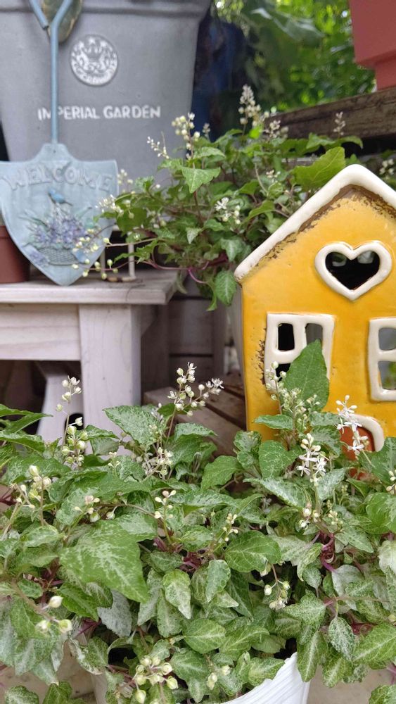 玄関口で ひとりで 蚊にブンブンたかられながら あーでもない こーでもない🤔(笑) ジュズサンゴも お迎えしたまんま 植え替えればよかった〰️💦🤣