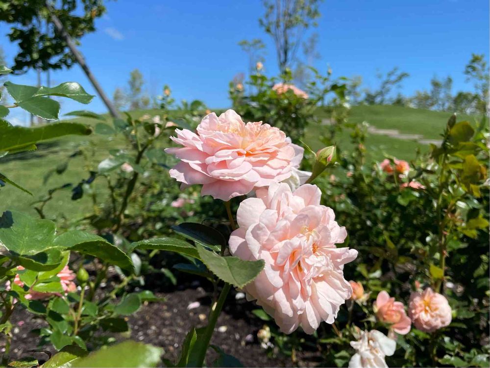 青空に優しいピンクの薔薇…❤︎