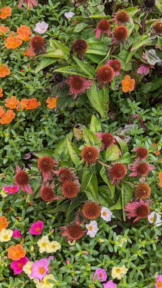 道すがら見た❗歩道脇の花壇でポーチュラカの中でイキイキと咲いていた綺麗な花🌱🌿🍀