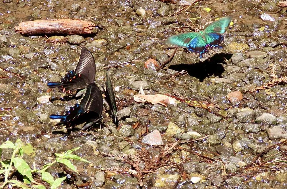 湧水池の畔の雄のミヤマカラスアゲハたち