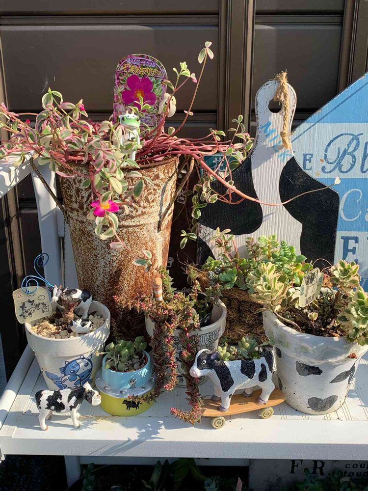 柴犬小夏ちゃん作牛リメ鉢🐮