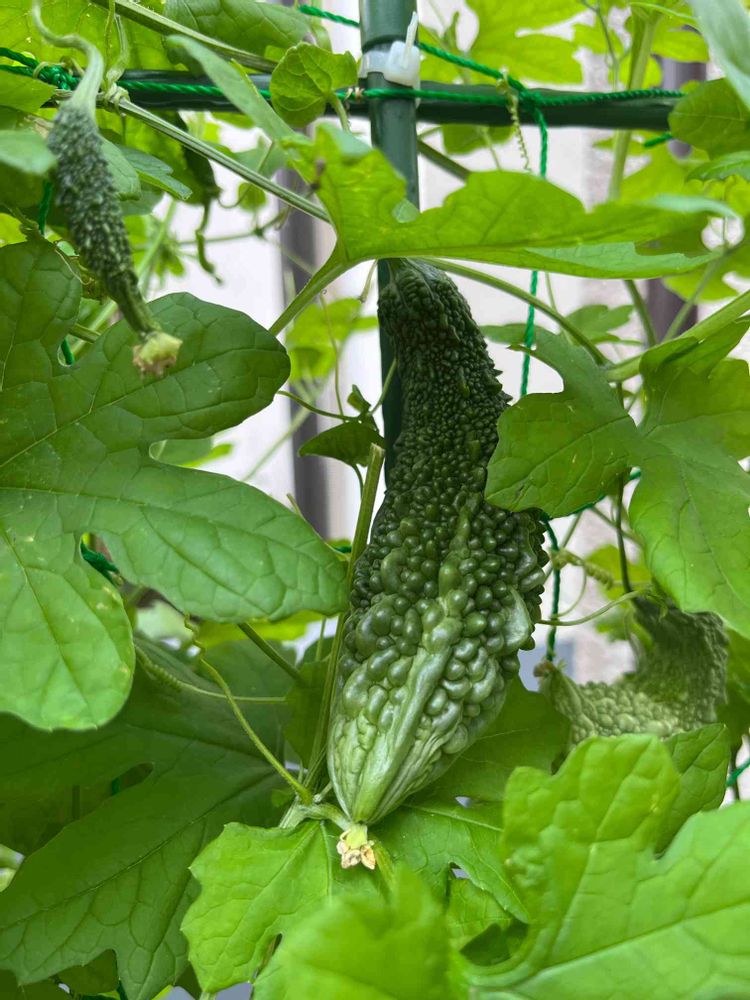 職場のボスに貰ったゴーヤの苗。あっというまにワサワサになり、実を付けはじめました😊