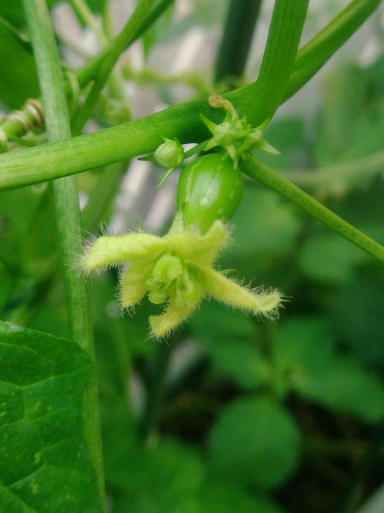 序盤の育ちが悪くて諦めかけていたオキナワスズメウリに、ようやく花が!これは雌花だね♪