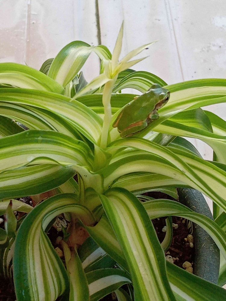 オリヅルランポニーちゃんの新芽が出てきたよ🙌🙌🙌って教えてくれてるんだよねケロケロ🐸🐸🐸