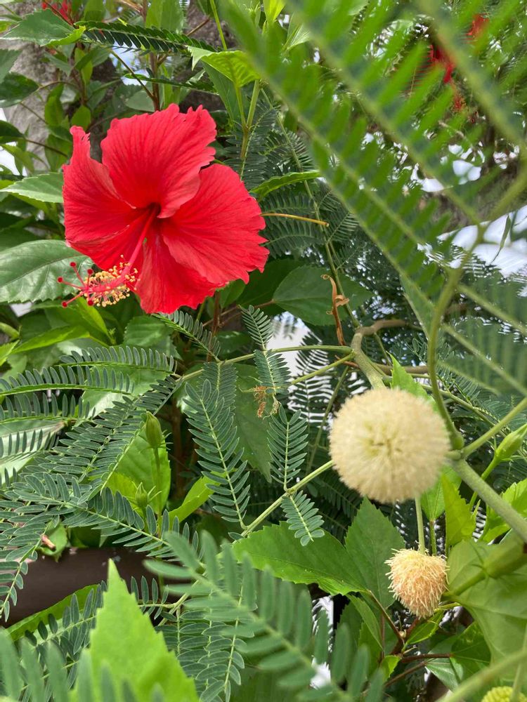 工事現場前にハイビスカスとギンネム🌺⚪️✨