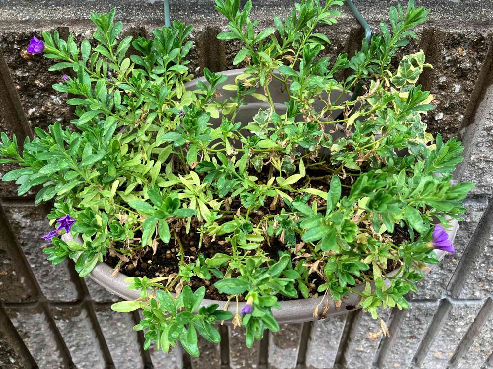 我が家でも切り戻しした4鉢のサントリーのサフィニアとカリブラコアが脇芽を出し欠けて2鉢完全に枯れてしまいました。今年は難しいですね。普通は切り戻しするんでしょうが…。