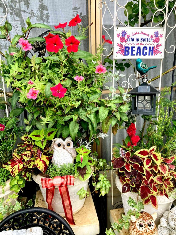 少し切り戻したので、花数が少なくなりましたが、ポツポツと咲いてます。挿し穂で増やしたコリウスは、寄植えにしてあちこちに