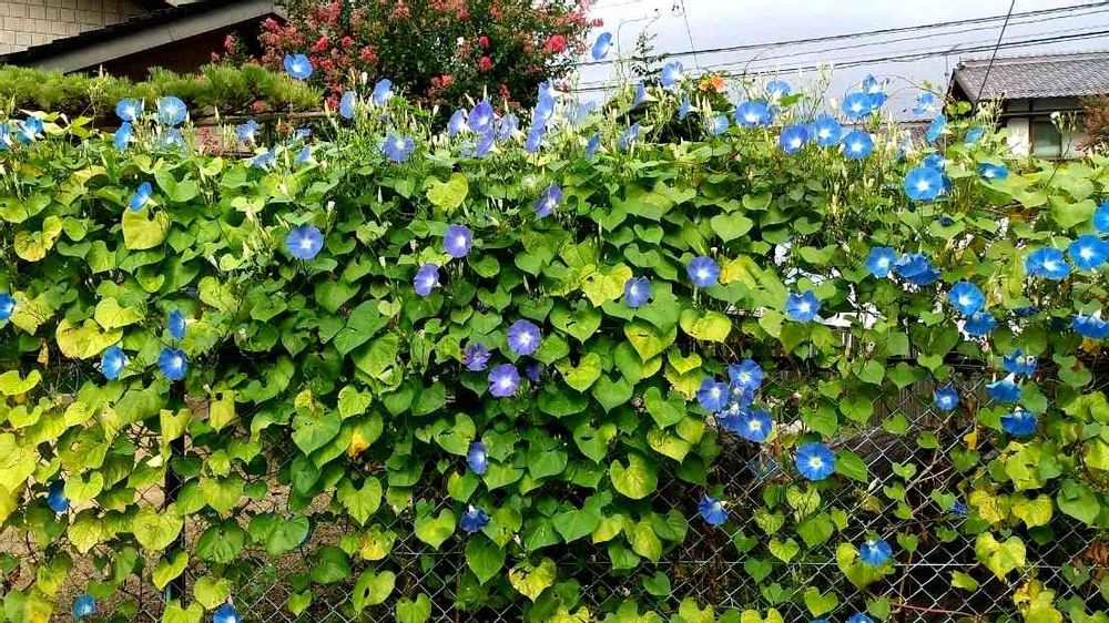 に絡みついて咲く朝顔