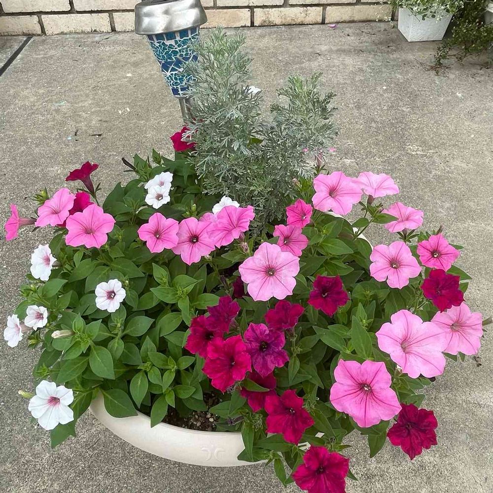 タフチュニア(スーパーチュニアビスタ)の挿し芽3色とアロマプランツです。
