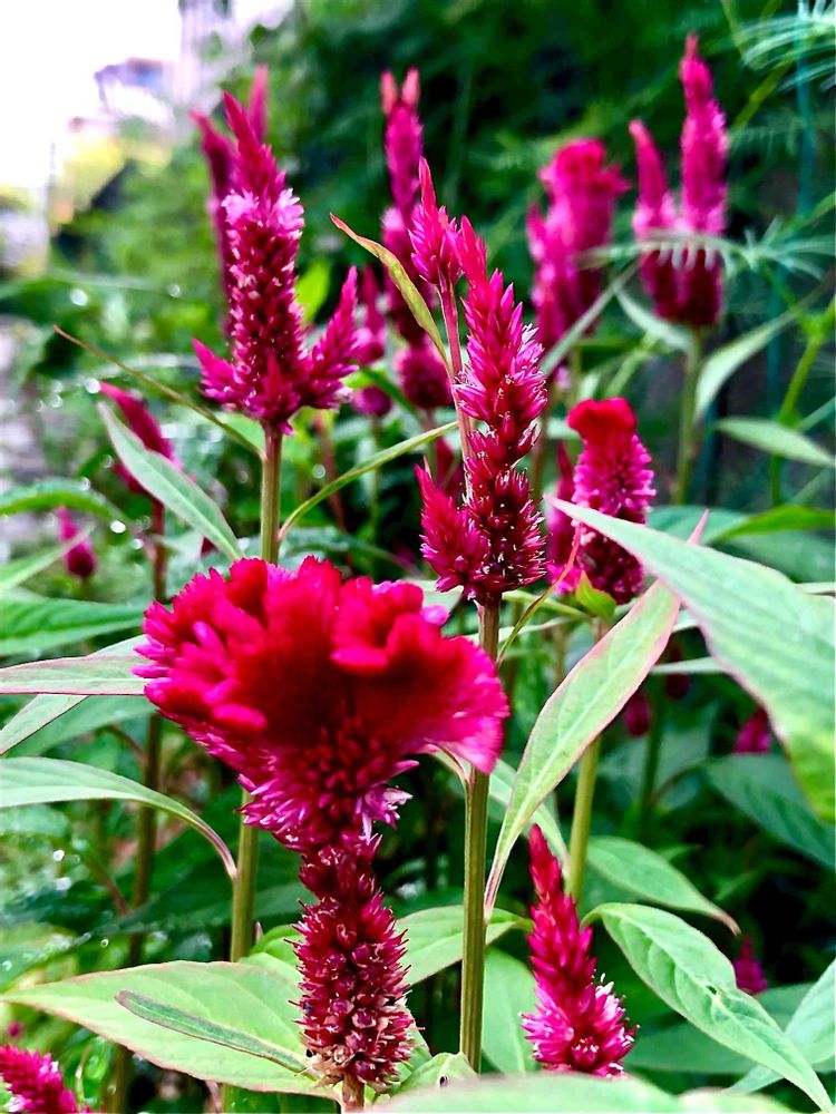 ノゲイトウのようなスマートな花に、鶏の鶏冠ののうな姿に😁ホント思い思い。