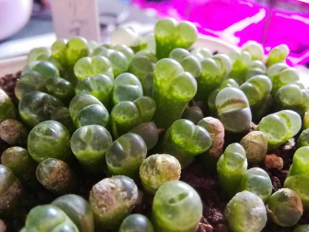 去年実生のメセン達はおととし実生の子たちの去年の今頃に比べると小さい気がする。