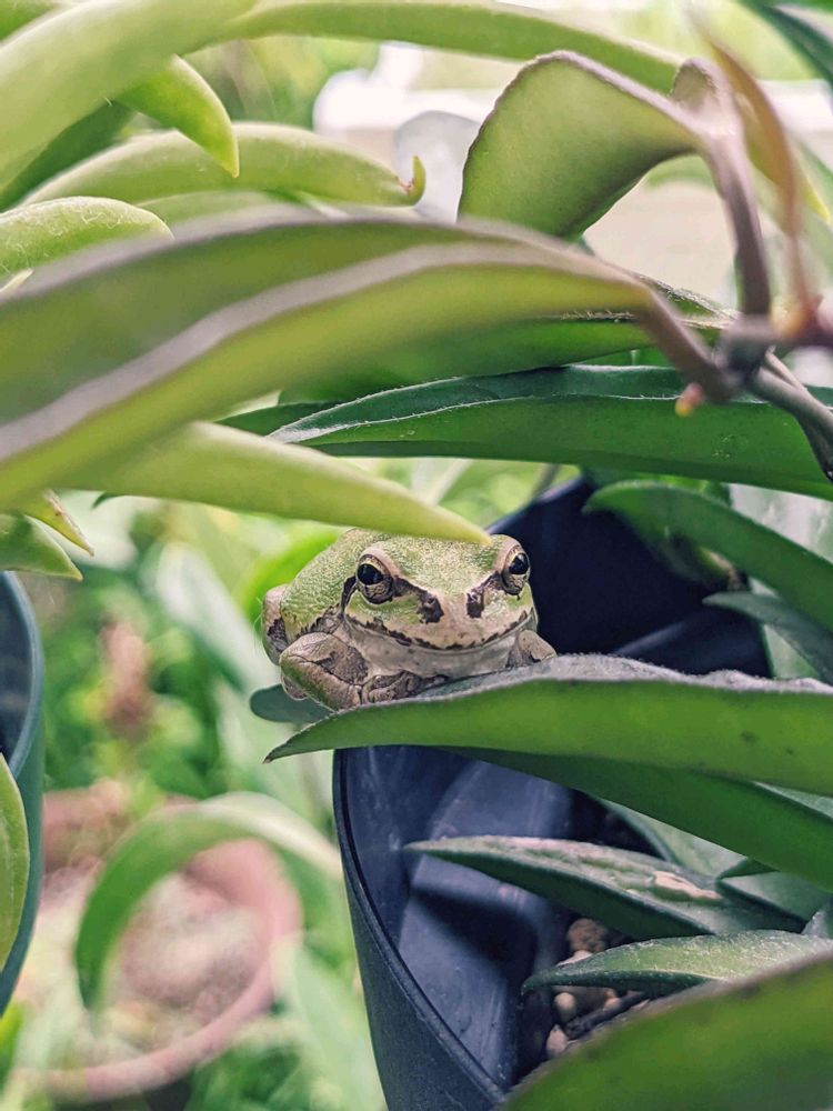 大変可愛らしいですね🥰本人?本蛙は同化してるつもりなのかもですね。