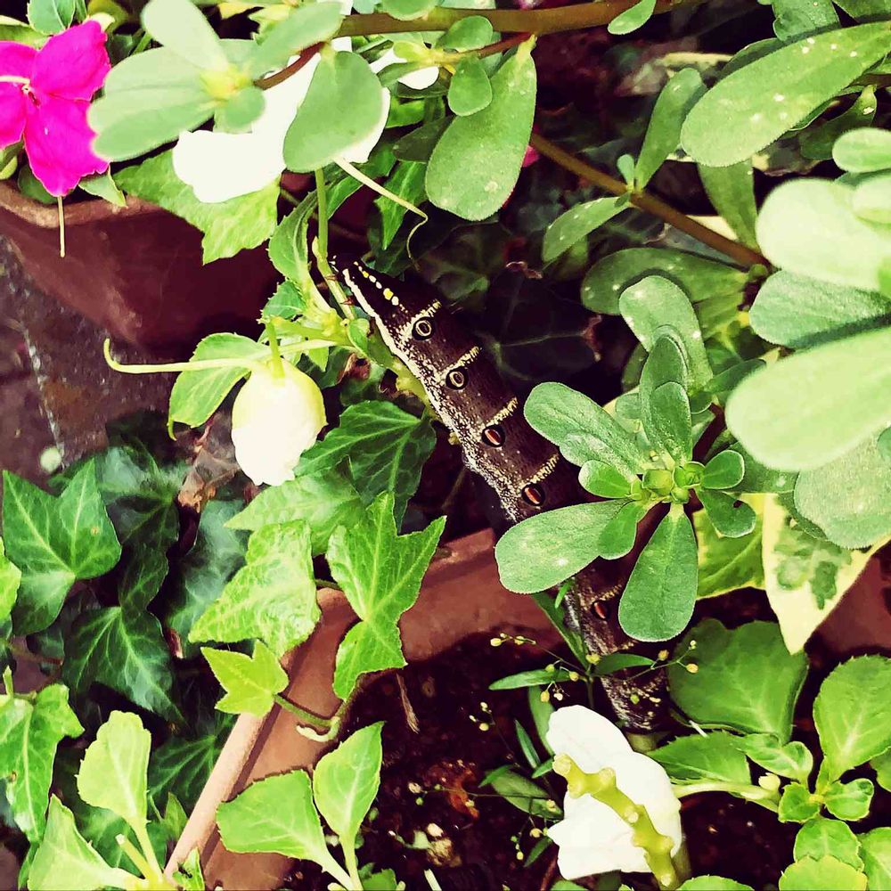 インパチェンスの🍃葉を食べてる【セスジスズメ】の幼虫が4〜5匹もいる😖😫😥