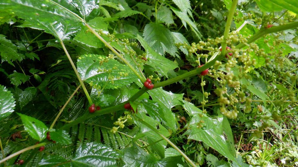 それがですねえ。さんざんネット検索したのですが赤いムカゴは見つからなくて、茶色とかばかりなんですよ。前回投稿したミヤマイラクサもムカゴイラクサ属で同属と知って驚きです。このムカゴと、もう一つ、茎を拡大したらイラクサの特徴であるトゲトゲも確認できました。