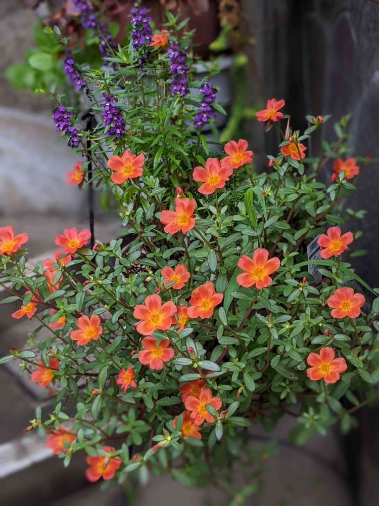 アンゲロニア+ポーチュラカのオレンジ寄せ植えが満開🈵だよ〜👏🥰🎶🎉