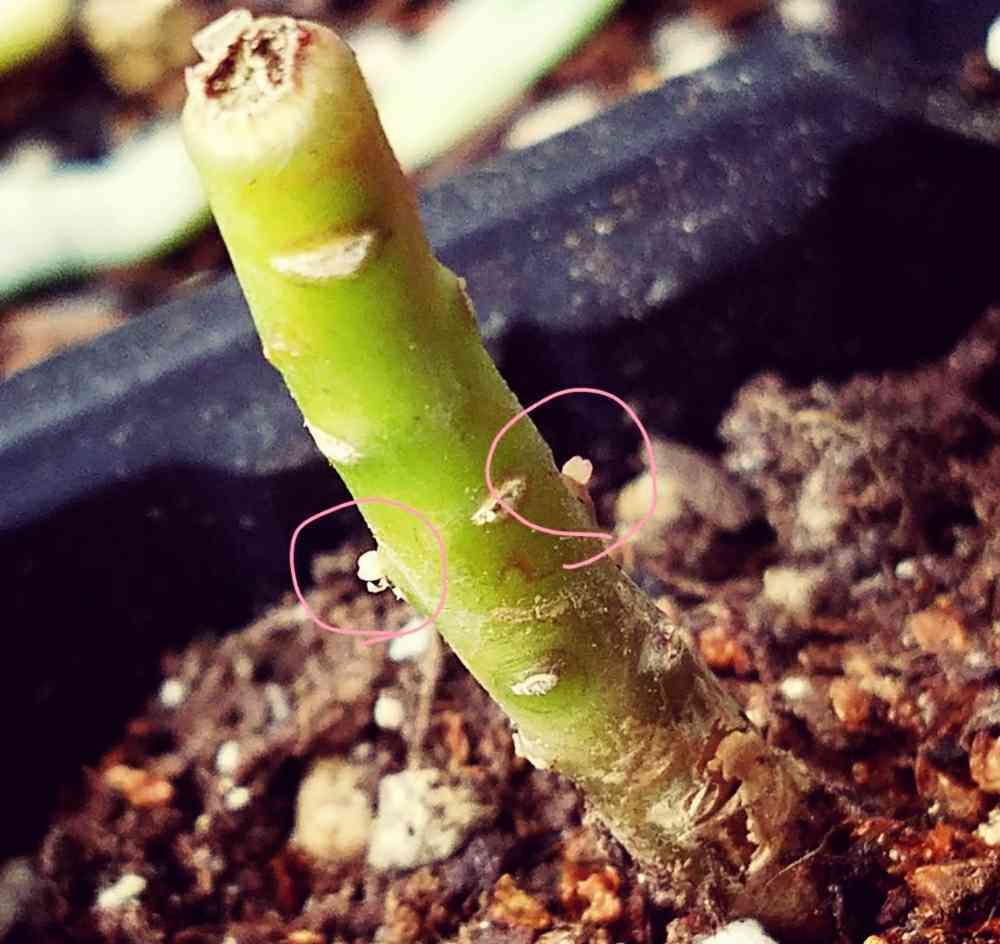 うちにも沢山ブロンズ姫ありますが、ブロンズ姫の気根はひげみたいに細~いので、まず芽で間違いないと思います😊