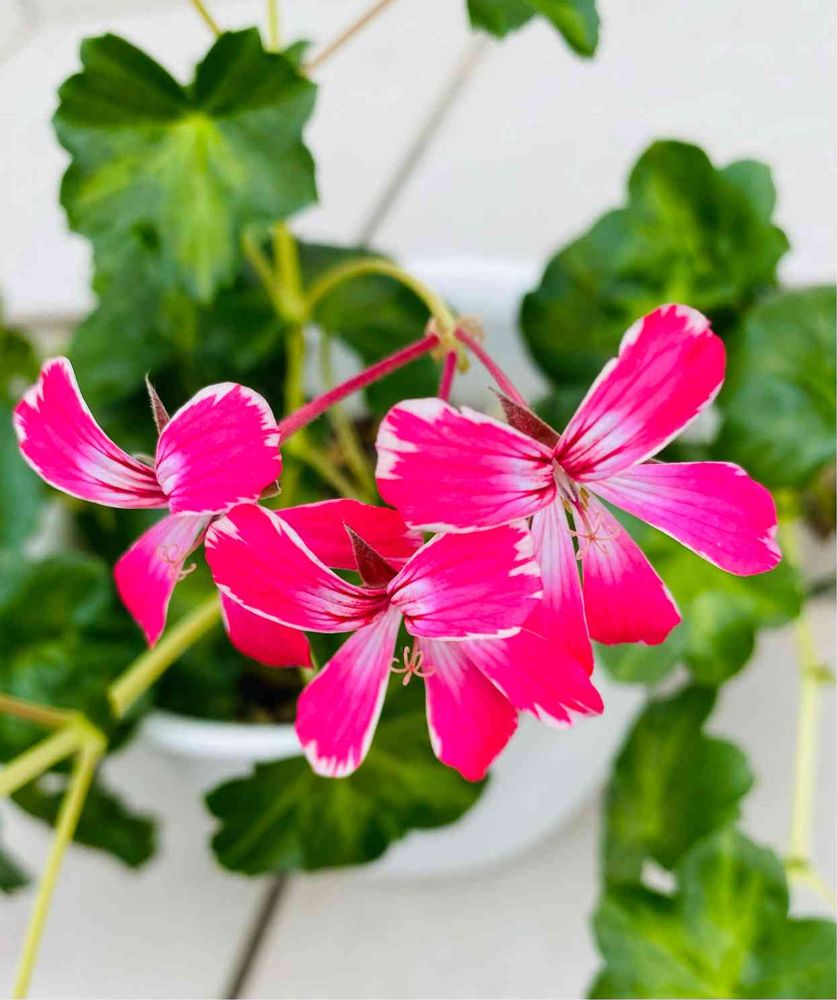 ビビッドなピンクにドッキリ💗ドキドキ😍白い班入で目を惹くゼラニウムですね🤗