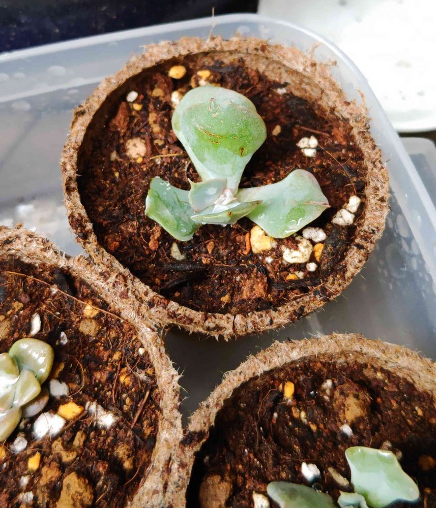 ダスティーローズにくっついていた子株4つを切り取って、水苔の上にポイッとしておいたら(ズボラ🤫)