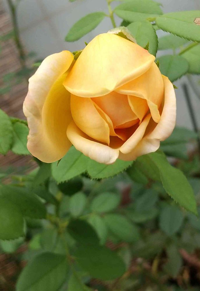 この薔薇は、朝曇だったから、開きかけで、止まっていました。