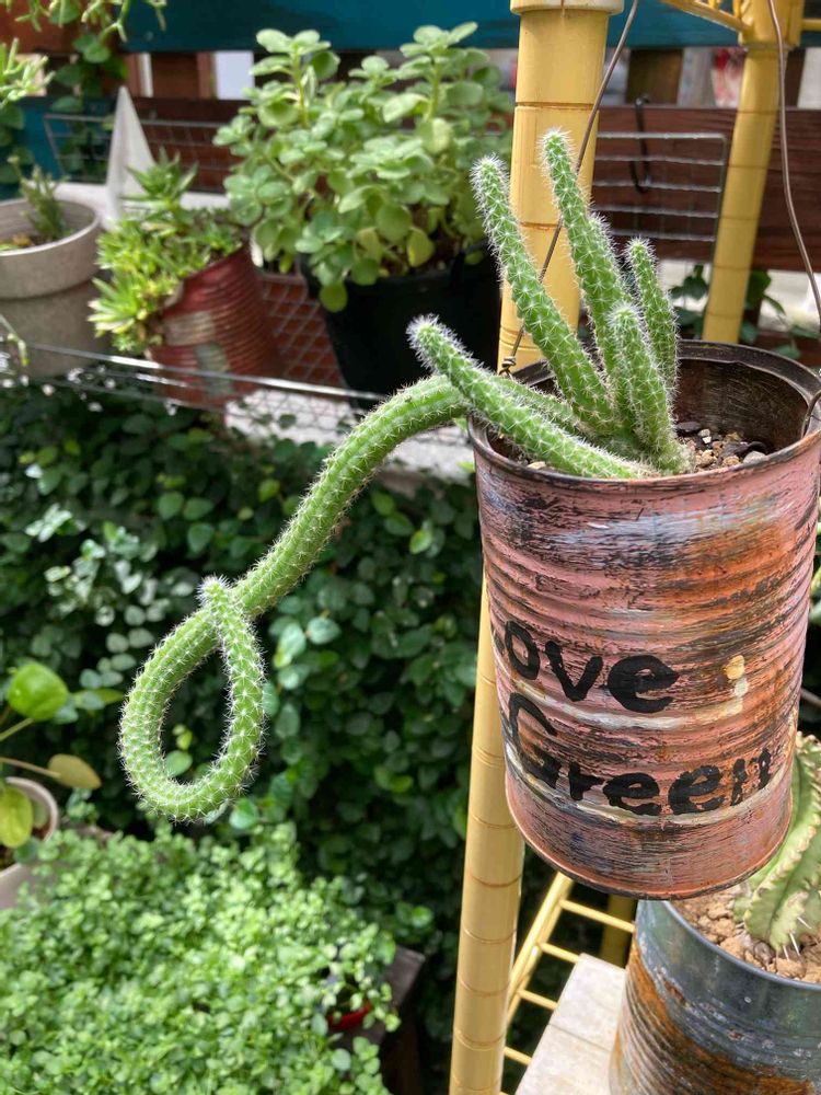 小指ぐらいだったのが、あれよあれよと子株を増やして親はニョロニョロ伸びてきた😆