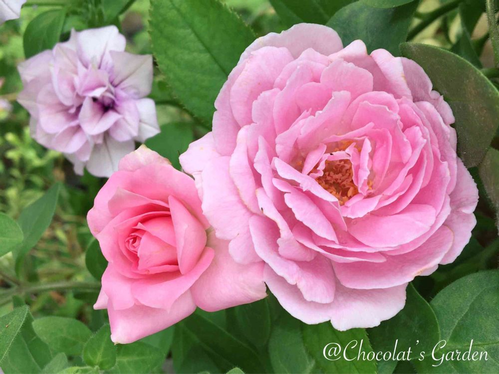 Chocolatさんの小さな庭,バラ,ペチュニアの投稿画像