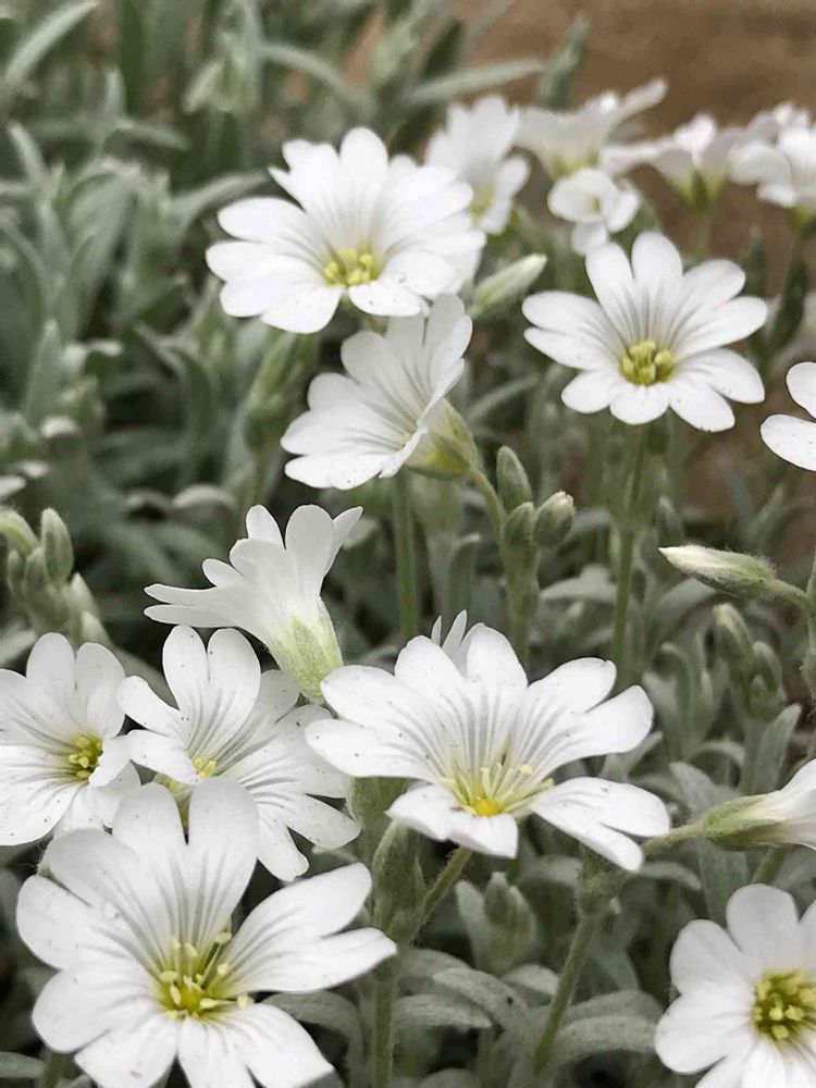銀葉に白のお花