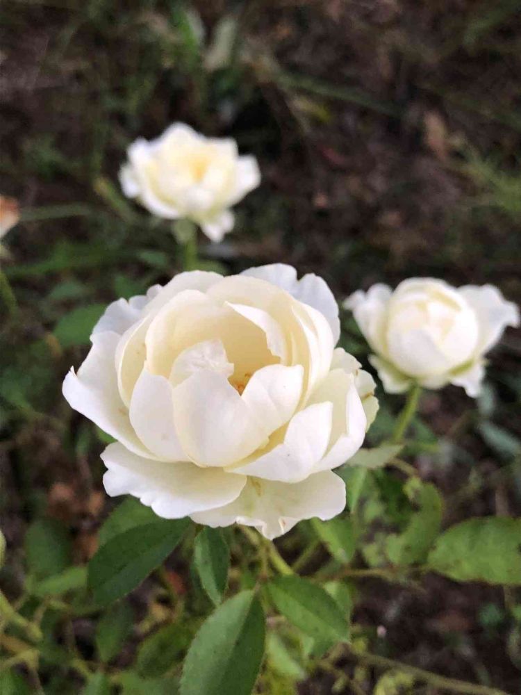 少し日が落ちかかってる中で、真っ白のミニ薔薇が綺麗でした🥰