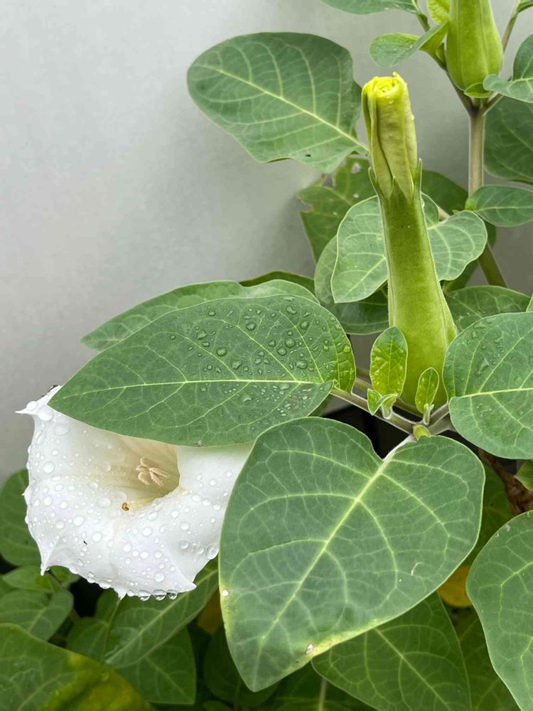 昨日投稿した黄色いクルンクルンした朝鮮朝顔の蕾からは黄色ではなく、真っ白な花が咲いています。🥹