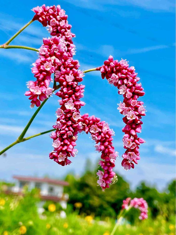 青空バックにタデのピンクの可愛いツブツブちゃんが映えますね〜💙💙💙💗💕💙💙💙