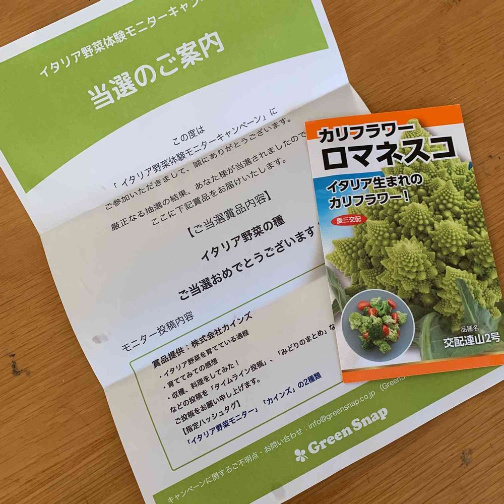 実は7月にイタリア野菜体験モニターキャンペーンのロマネスコの種に当選していました。