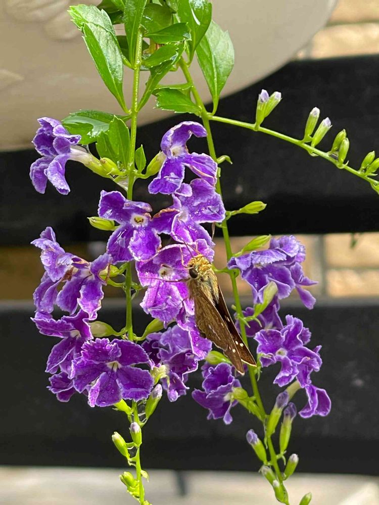 デュランタをよく見たら、イチモンジセセリが、懸命に蜜か水を吸ってました😊👍🙏🦋