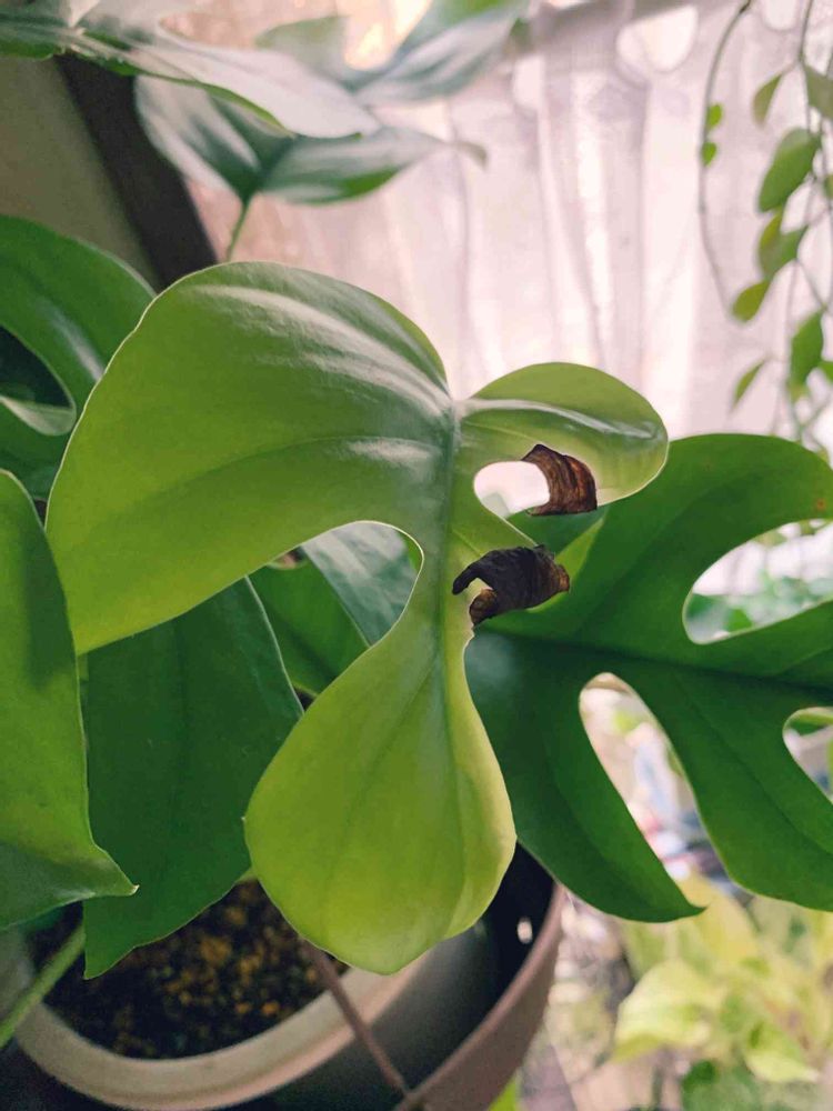 うちの姫モンステラ、新芽がフルで茶色になってしまい現在の みどりのまとめの状態になってしまいました💦
