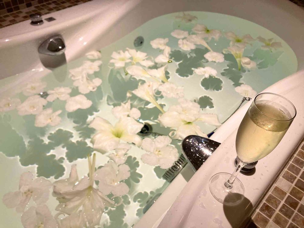 テッポウユリとフヨウを浮かべてバリ風の大人の時間💕