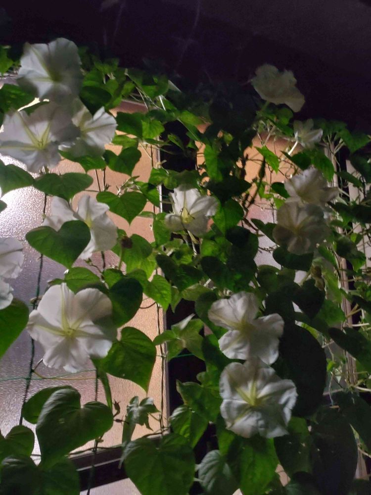 初めての夜顔がモリモリで夜の暗闇出たり入ったり眺めてます