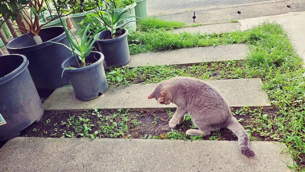 ぴょんぴょん動くバッタを、どうしても放っておけないんでしょうね🐱